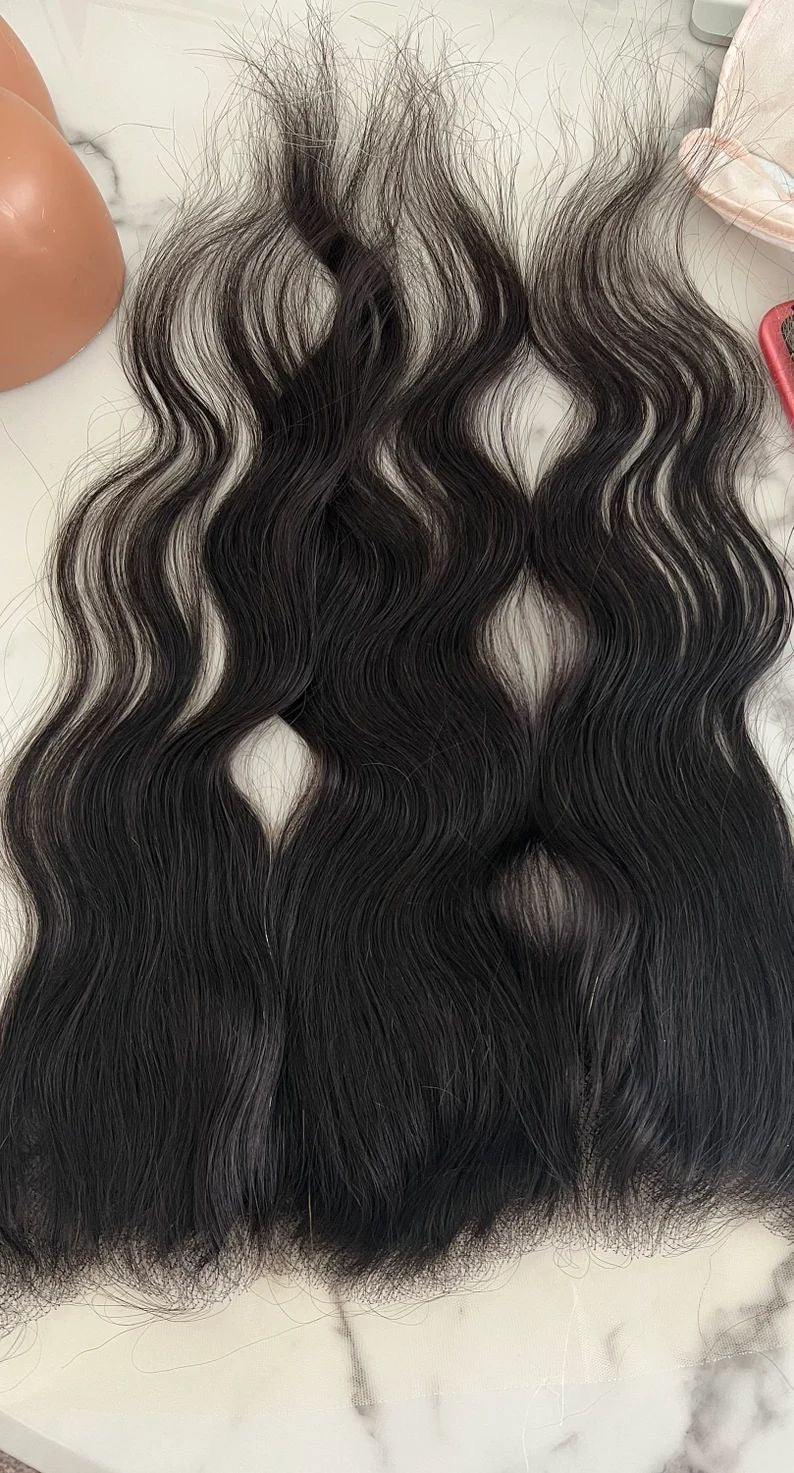 Raw Indian frontals are high-quality hairpieces made from 100% unprocessed, natural Indian hair. These frontals are prized for their durability, versatility, and natural appearance. They typically feature a lace or silk base that mimics the natural scalp, allowing for a seamless blend with your natural hairline. The hair on the frontals is often hand-tied to the lace, ensuring a realistic look and feel. Raw Indian hair is known for its natural luster, thickness, and ability to hold styles, making it an excellent choice for those seeking a premium hair enhancement solution. These frontals can be dyed, styled, and treated just like your natural hair, providing a long-lasting and customizable option for various hair needs.